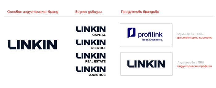 Голямата новина всъщност е новата бранд архитектура и представянето на пазара на LINKIN, основната индустриална търговска марка, под чиято шапка ще се развиват производствените мощности и други бизнеси в групата. Другата сериозна промяна в бранд стратегията на компанията касае Профилинк, който става архитектурен продуктов бранд на LINKIN и ще продължава да се фокусира в разработване на алуминиеви и ПВЦ системи за прозорци, врати, фасади, перголи и др.